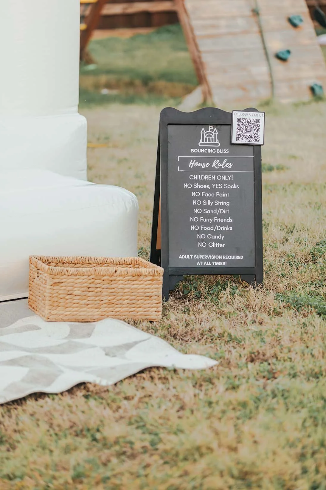 We recommend that the grass be mowed if the bounce house is on a lawn and that all rocks and sticks be picked up. If you have a pet, please pick up all animal poop.